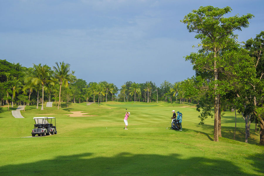 Despite the palm trees and brightly coloured trees and shrubs, the course has a Scottish links feel, with great views of the Gulf of Thailand from the hilly back nine. The course has been built on a narrow strip of land on gently undulating terrain and the holes on the front nine are quite close so a badly mishit shot can end up on the adjacent fairway. However, the landing areas are quite generous so they should not cause too much trouble.